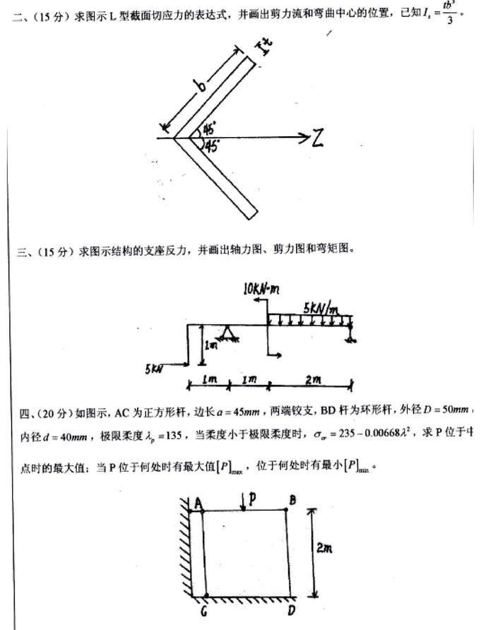2011年大连理工大学829材料力学(土)考研真题(3)