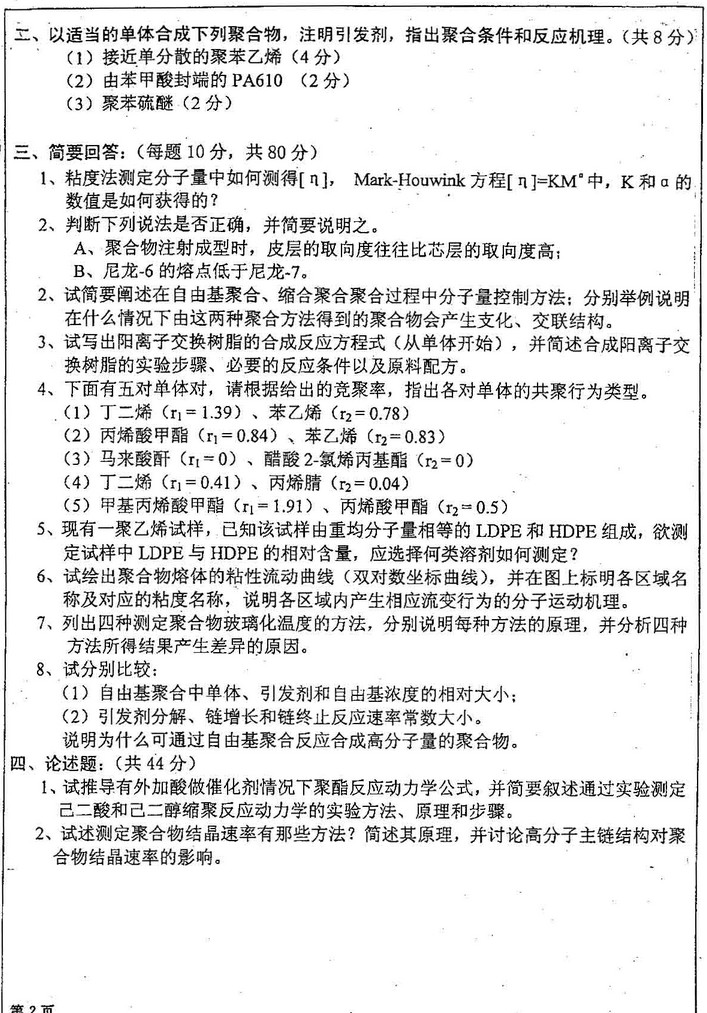 2013年四川大学866高分子化学及物理学考研真题(2)