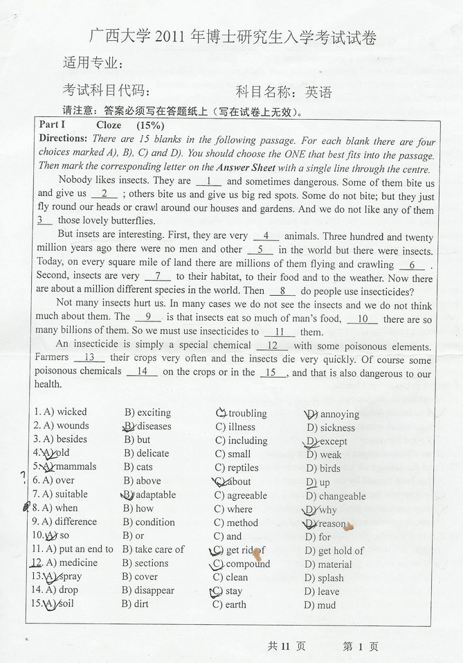 英语完形 本站小编 跨考教育 2015-06-22