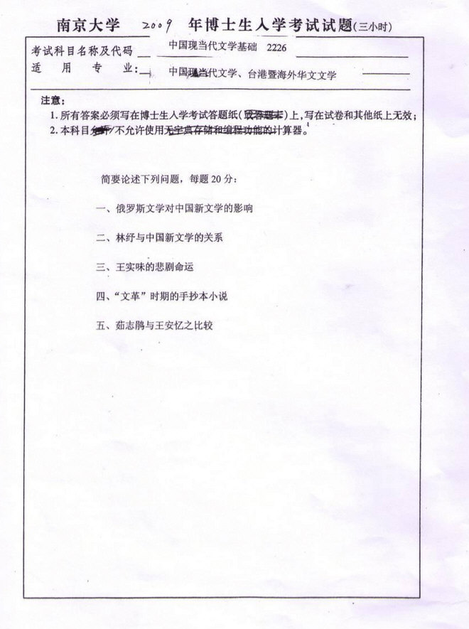 2006-2010年 南京大学文学院现当代文学考博专业课真题(2)