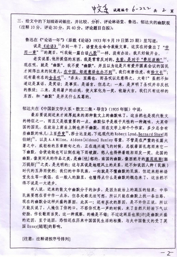 2006-2010年 南京大学文学院现当代文学考博专业课真题(9)