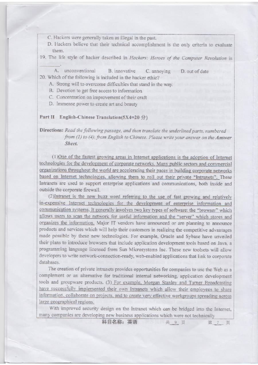 武汉大学2013-2016年博士研究生入学考试英语考博真题(17)