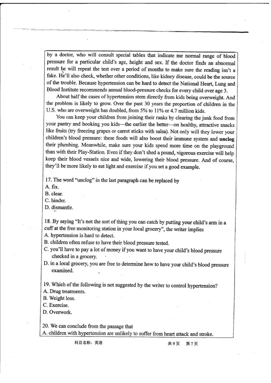 武汉大学2013-2016年博士研究生入学考试英语考博真题(7)