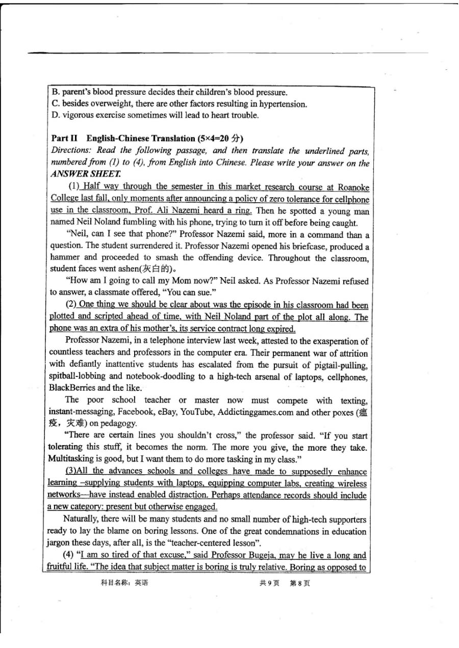 武汉大学2013-2016年博士研究生入学考试英语考博真题(8)