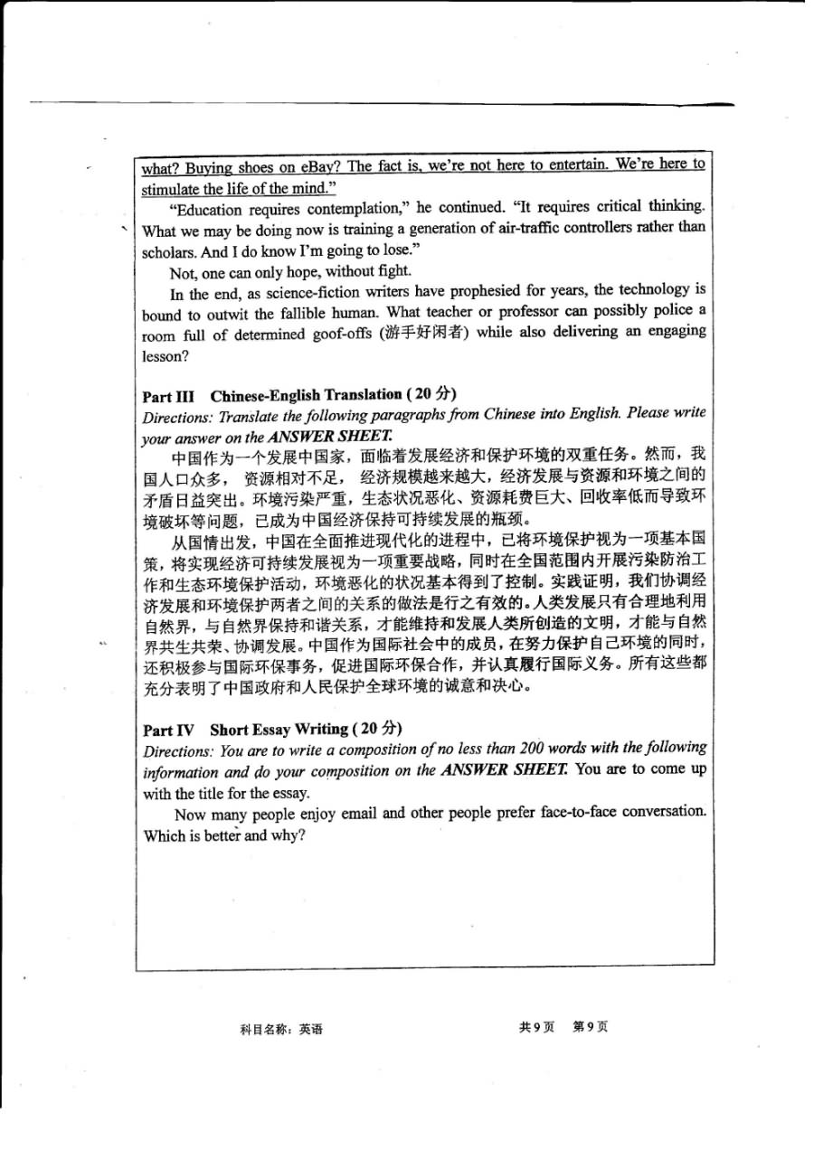 武汉大学2013-2016年博士研究生入学考试英语考博真题(9)
