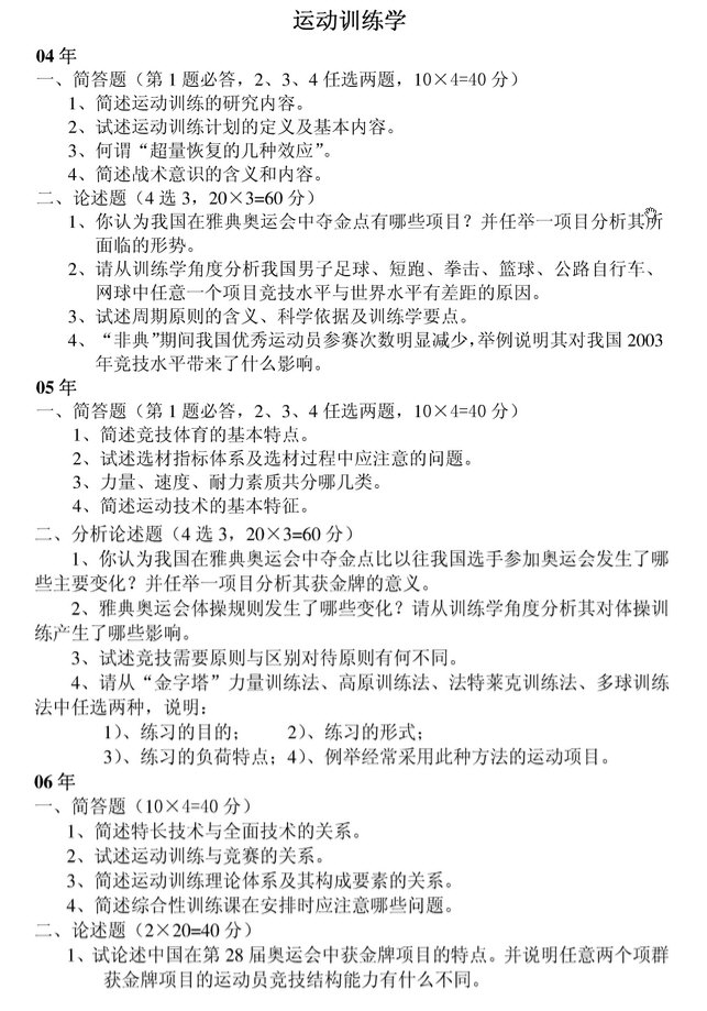 专业课考研资料 本站小编 网络资源 2015-07-08 学校:北京体育大学 专业:运动训练学 题型说明及变化解析 具体题型 第1题 名词解释5个第2题 简答题3 ...
