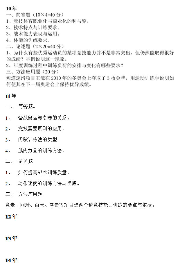 北京体育大学历年运动训练学教学论运动生理学考博真题(3)