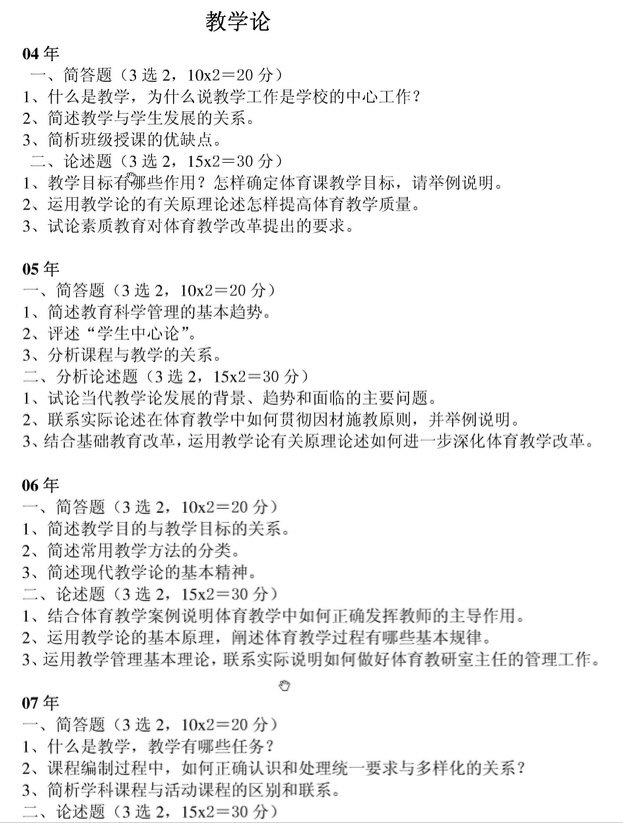 学校:北京体育大学 专业:运动训练学 题型说明及变化解析 具体题型 第1题 名词解释5个第2题 简答题3 ...
