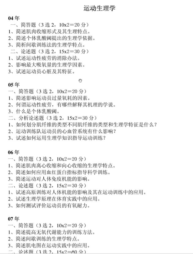 北京体育大学历年运动训练学教学论运动生理学考博真题(6)