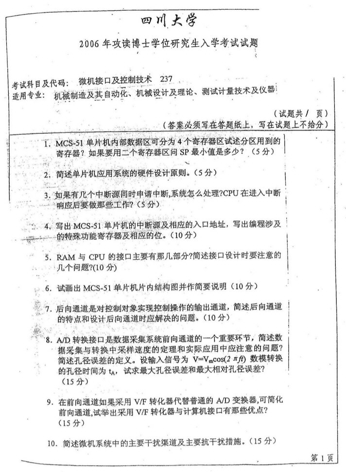 四川大学2011,2008,2006,2004微机接口及控制技术考博试题(3)