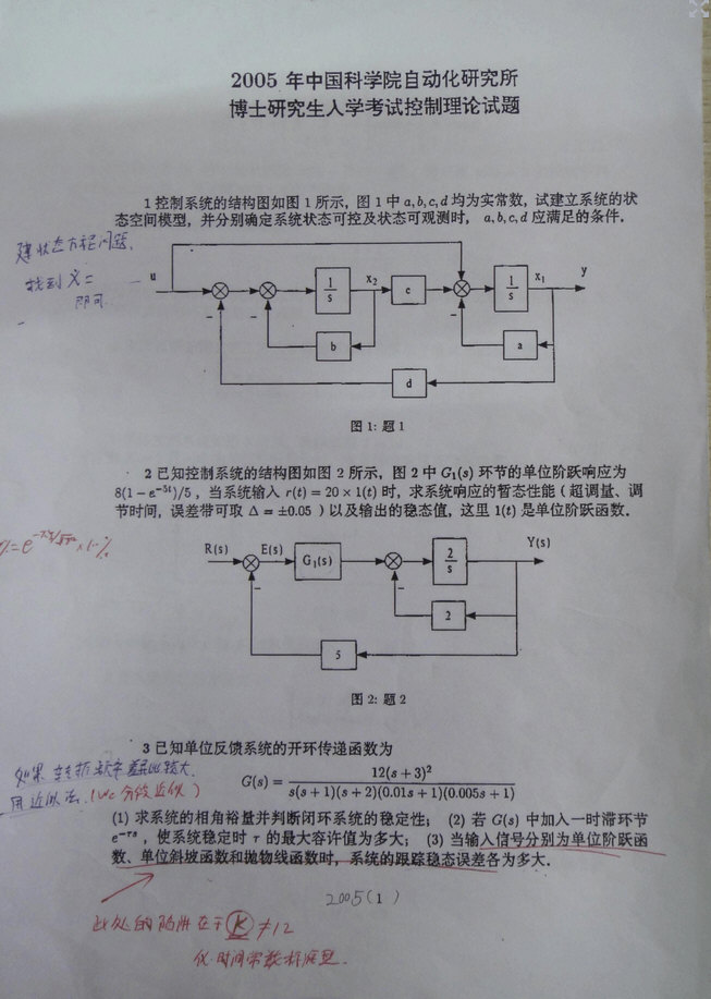 2005年中科院自动化所考博控制理论试题及部分参考答案