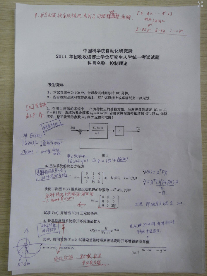 2011年中科院自动化所考博-控制理论试题及参考答案