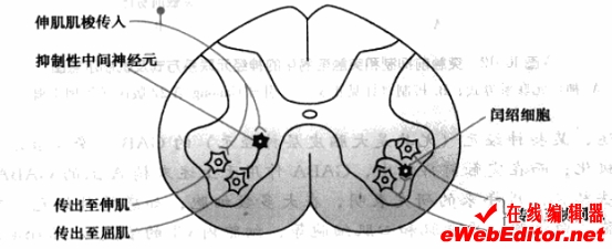(1)传入侧支性抑制:传入纤维进入中枢后,一方面通过突触联系兴奋一个中枢神经元,另一方面通过侧支兴奋一个抑制性中间神经元,通过后者的活动再抑制另一个中枢神经元。