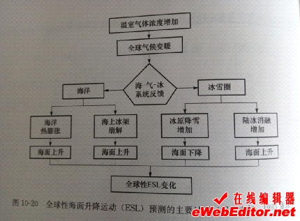 (3) 冰雪覆盖面积和厚度的变化还影响海平面的高低。在寒冷时期,降雪多而融化少,这样大陆就把水分以冰雪的形式留在大陆上,不能通过河川径流等水分外循环形式 如数还给海洋,导致海洋支出的水分多,收入的水分少,海水就会变少,海平面就会下降。相反,在温暖时期,大陆上的积雪就会融化,这时海洋收入的水分多于支 出的水分,引起海水增多和海平面上升。