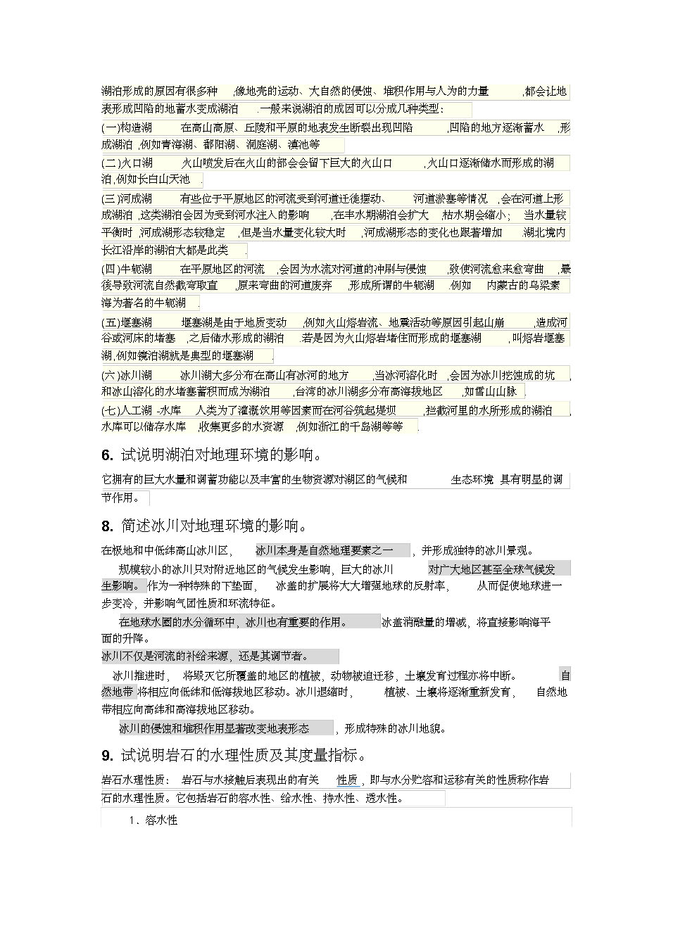 自然地理学(博士)1999-2017 2017年试题 一、简答题 1.岩溶作用 2.土壤的物质组成 3.自然区划的原则 二、论述题 4.气候的形成 5.生态系统的功能 6.水分循环的过程 2016年试题 一、简答题 1.地球表面的基本特征 2.土壤的一般形态特征 3.生态系统的组分 二.论述题 1.气候变化的原 ...