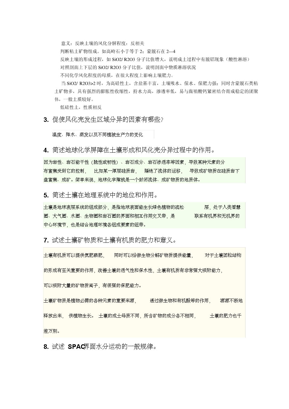 自然地理学(博士)1999-2017 2017年试题 一、简答题 1.岩溶作用 2.土壤的物质组成 3.自然区划的原则 二、论述题 4.气候的形成 5.生态系统的功能 6.水分循环的过程 2016年试题 一、简答题 1.地球表面的基本特征 2.土壤的一般形态特征 3.生态系统的组分 二.论述题 1.气候变化的原 ...