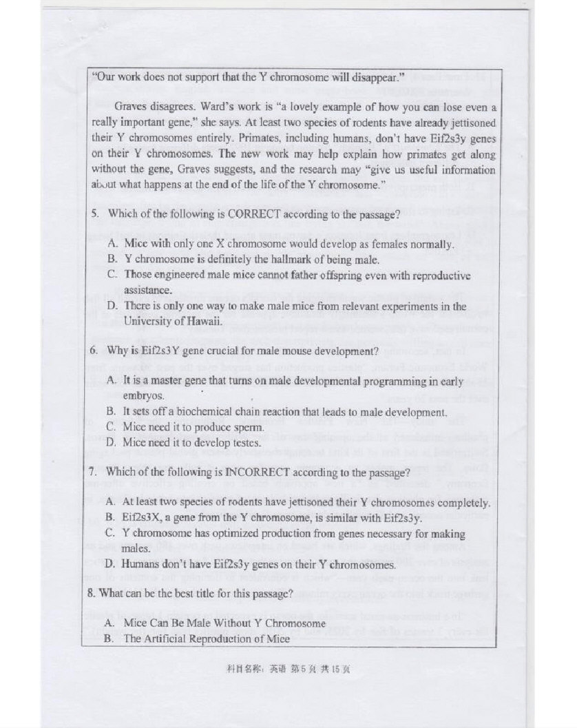 2016-2017年武汉大学博士生英语入学考试真题答案(5)