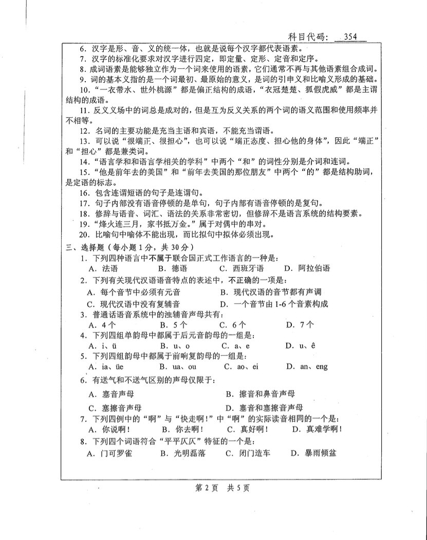 354-汉语基础一、考试性质汉语基础考试是汉语国际教育硕士生入学考试科目之一,是由汉语国际教育硕士专业学位教育指导委员会统一制定考试大纲,教育部授权的各汉语国际教育硕士生招生院校自行命题的选拔性考试。本考试大纲的制定力求反映汉语国际教育硕士专业学位的特点,科学、公平、准确、规范地测评考生的相关知识基 ...