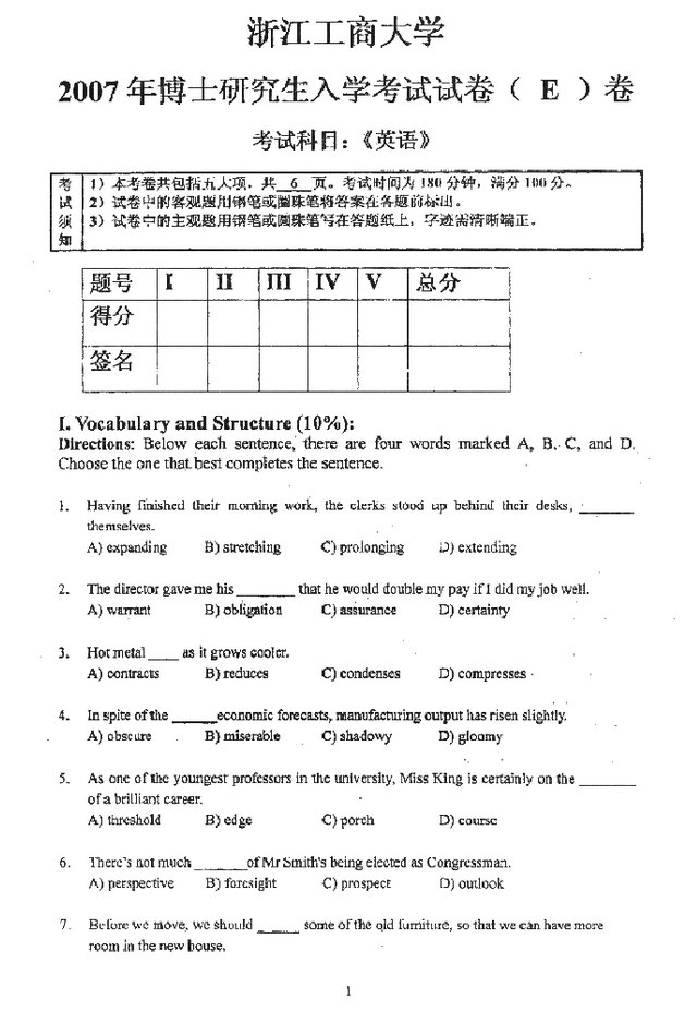 浙江工商大学2007考博英语试题