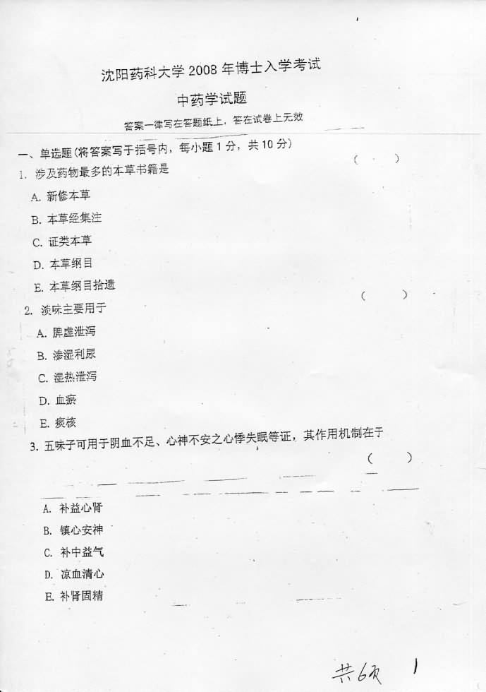 • 南京农业大学2007年考研真题-中药学专业基础综合