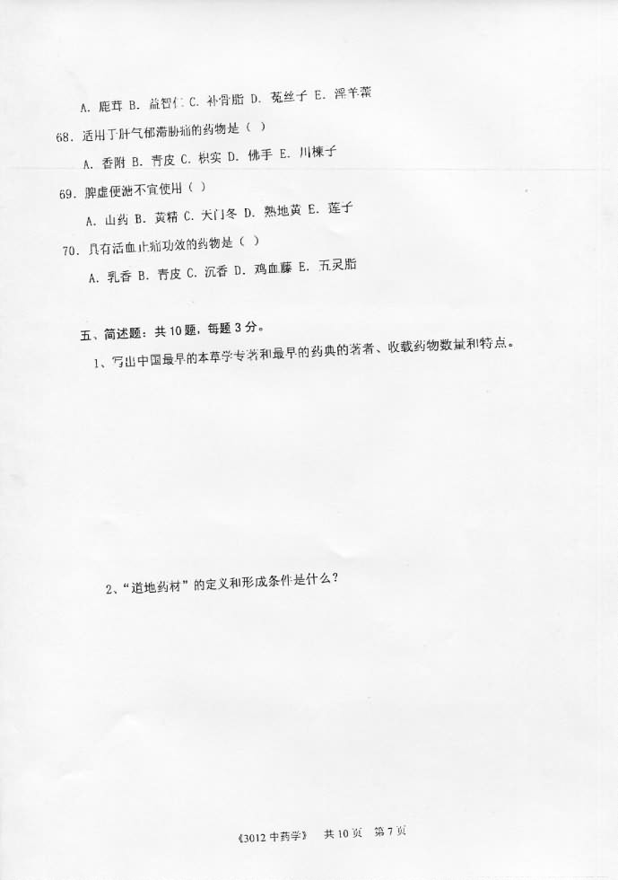 沈阳药科大学2008到2012年中药学考博真题(13)