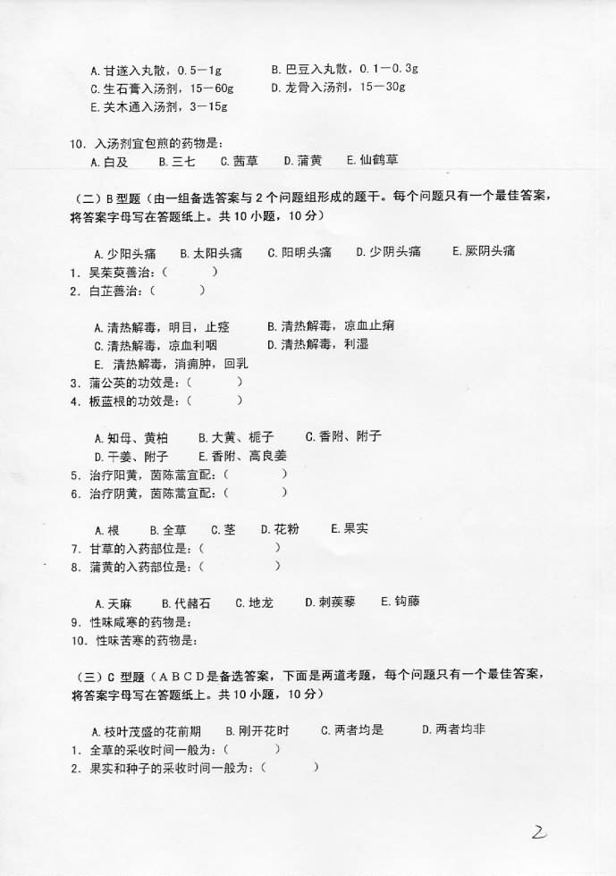• 江苏大学2007年考研真题-中药综合