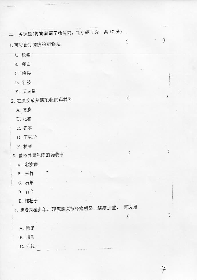 沈阳药科大学2008到2012年中药学考博真题(4)