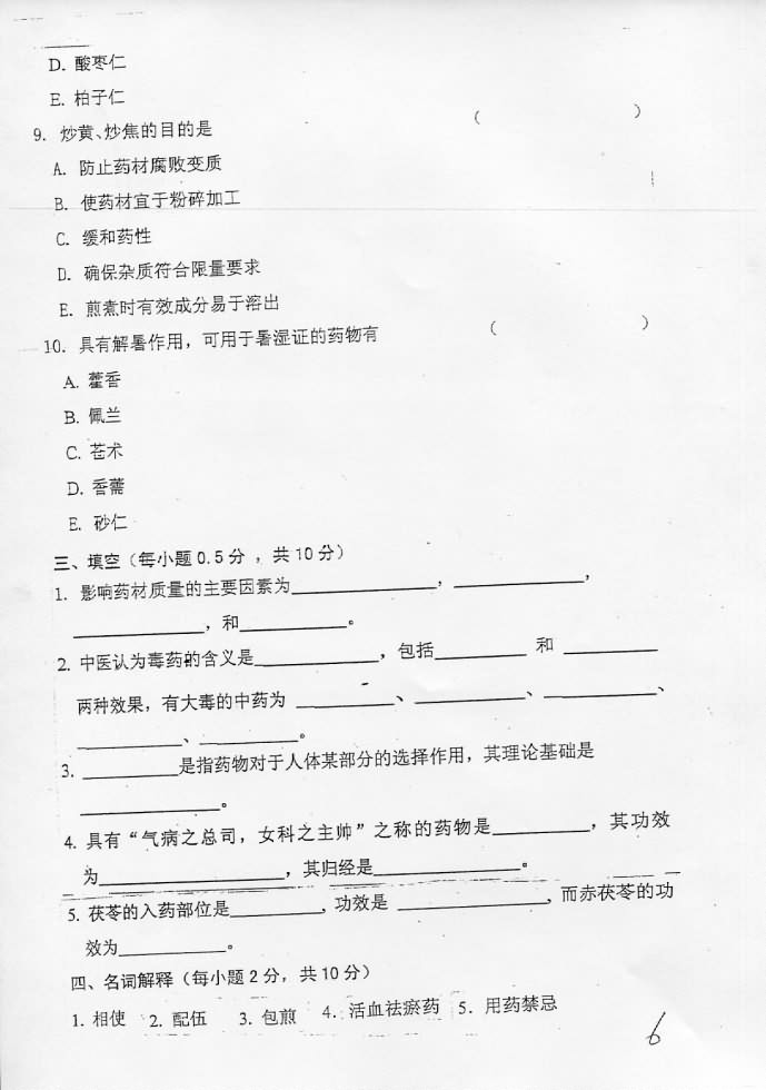 沈阳药科大学2008到2012年中药学考博真题(6)