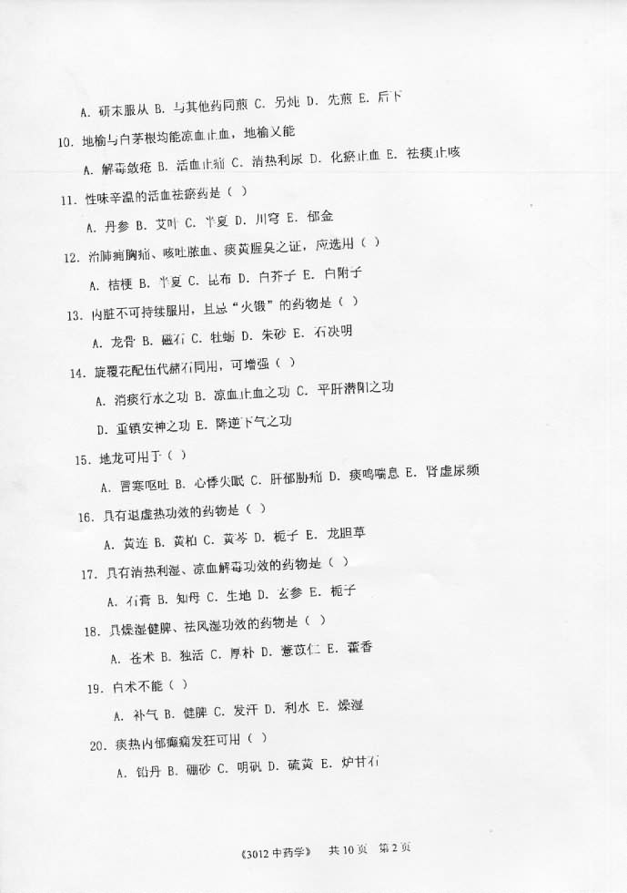 • 江苏大学2007年考研真题-中药综合
