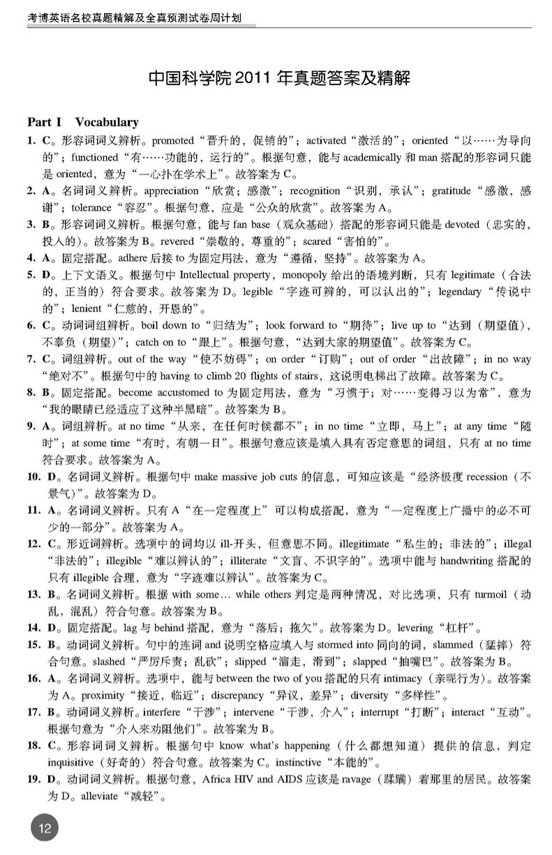中国科学院2011年考博英语真题 打印版 套装专供(12)
