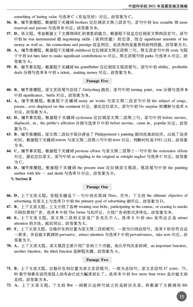 中国科学院2011年考博英语真题 打印版 套装专供(15)