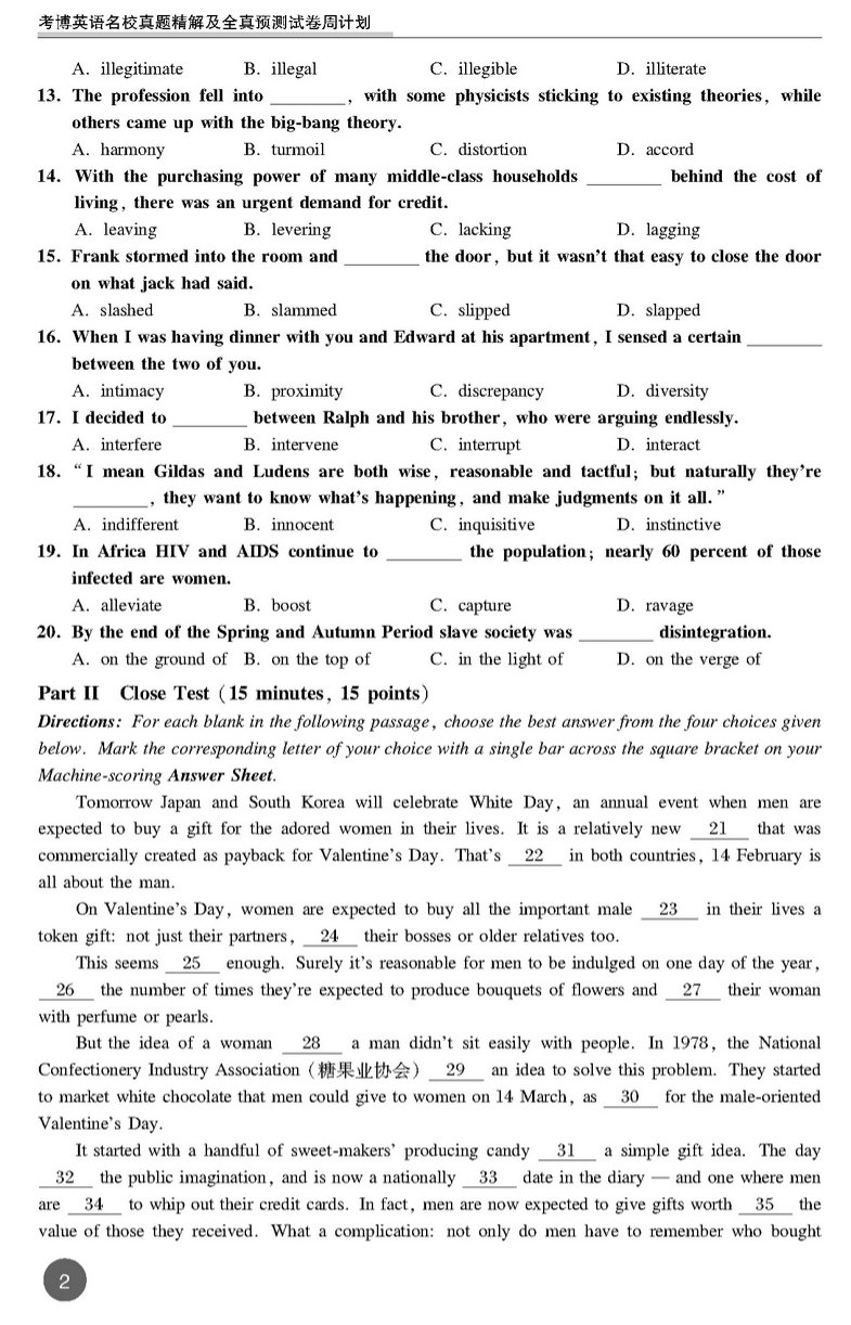 考博 本站小编 免费考研网 2018-04-012018年兰州大学民族学专业考博英语真题。 第一题30个单选题。 第二题 写作