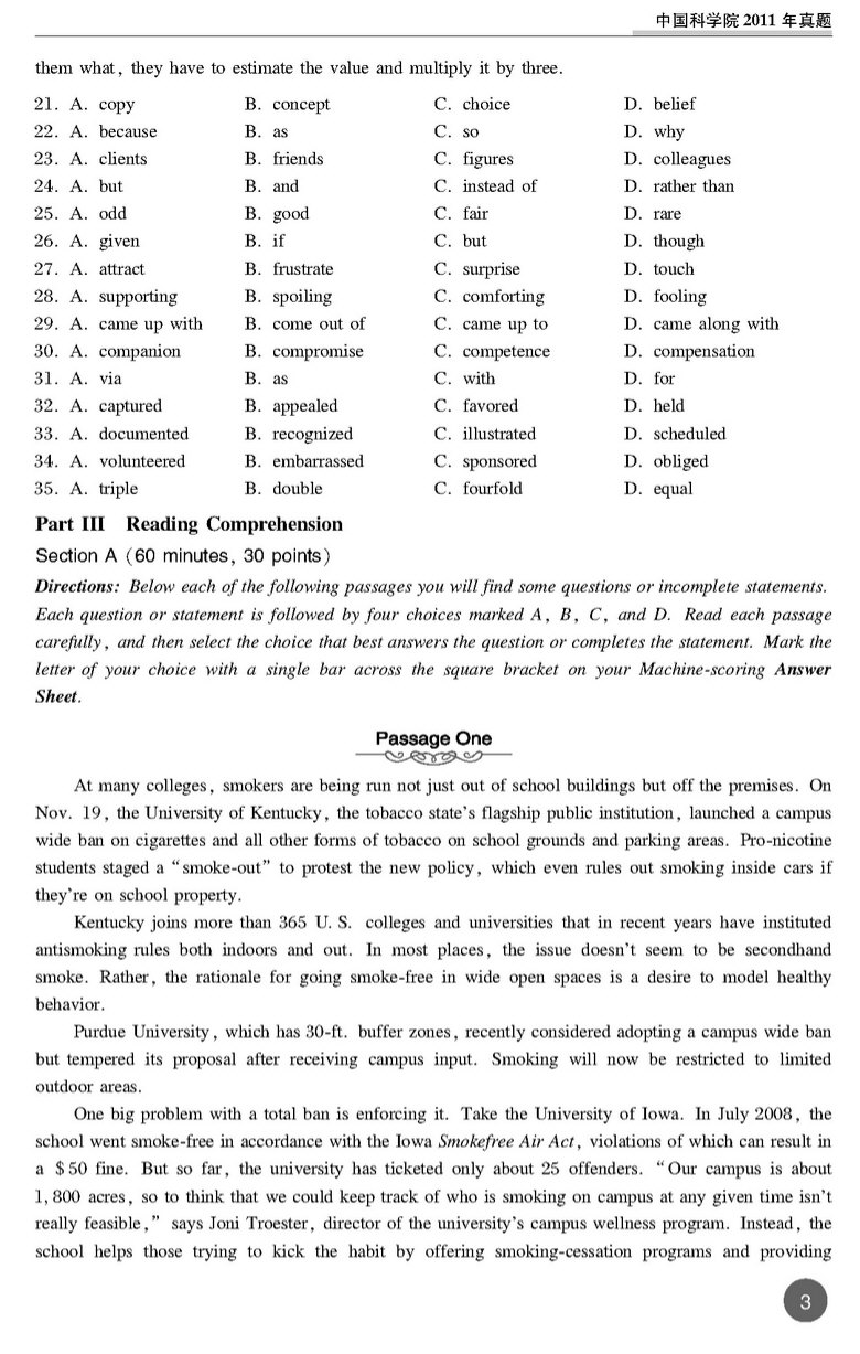 中国科学院2011年考博英语真题 打印版 套装专供(3)
