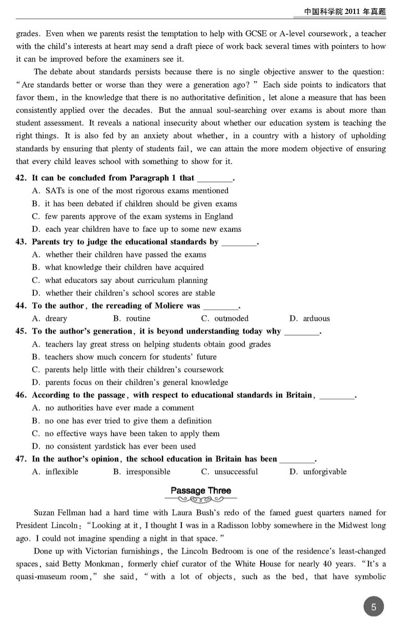 中国科学院2011年考博英语真题 打印版 套装专供(5)