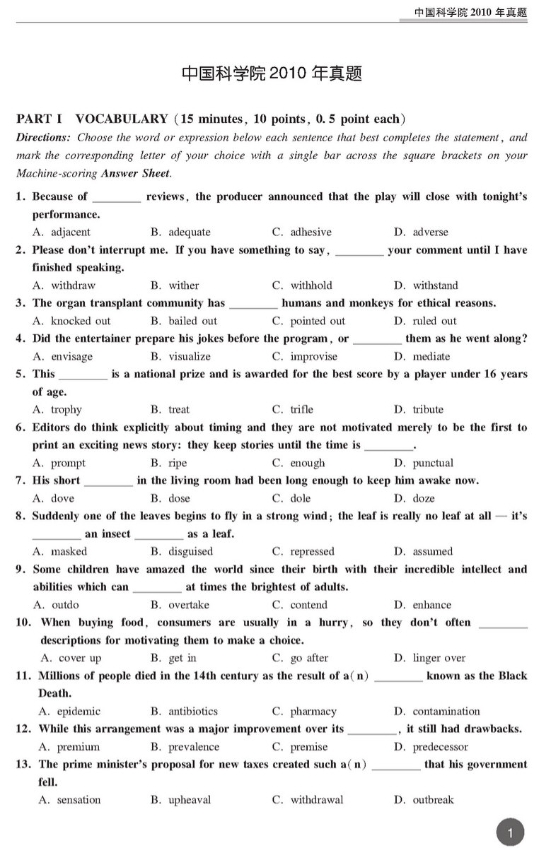 • 中国科学院2011年考博英语真题 打印版 套装专供