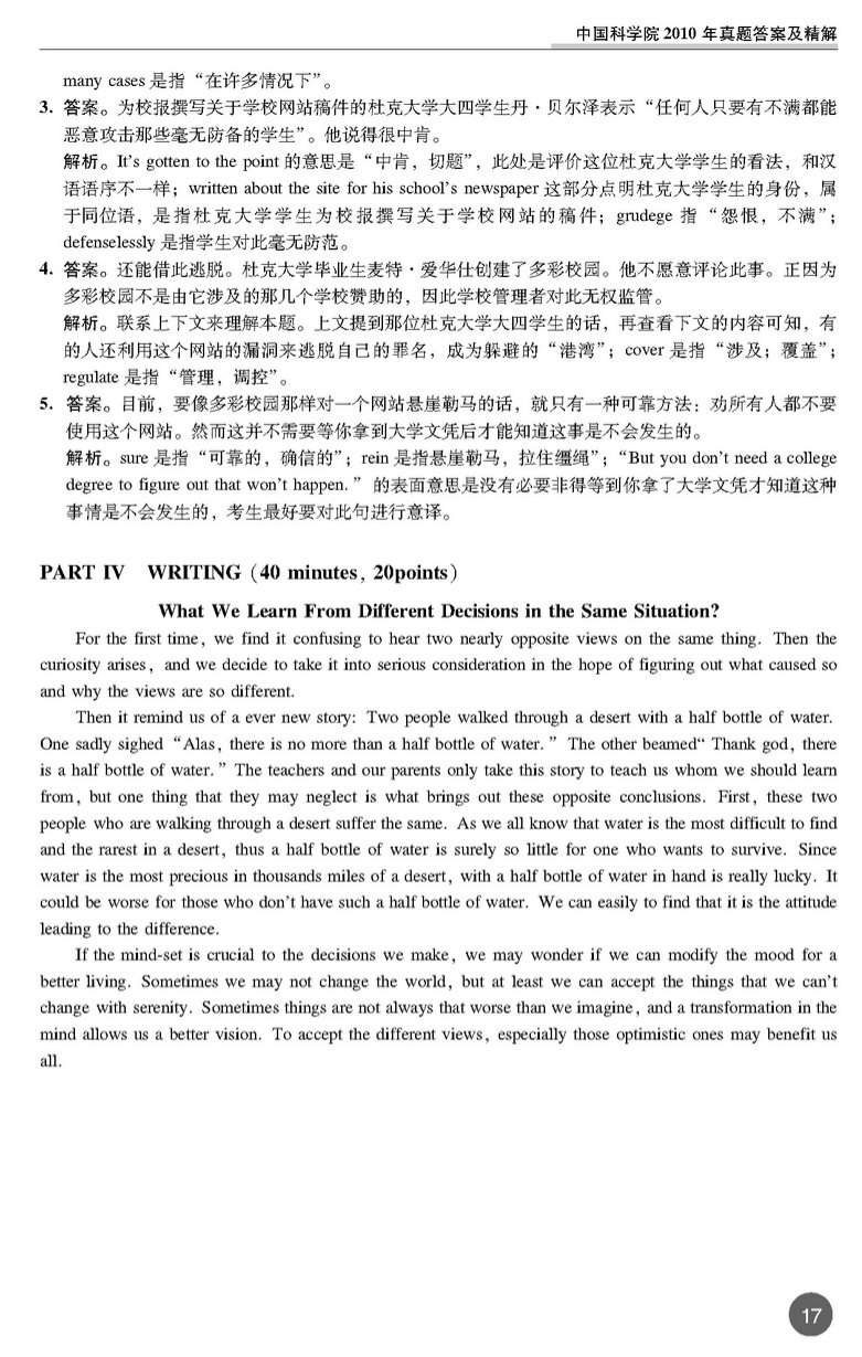 中国科学院2010年考博英语真题 打印版 套装专供(17)
