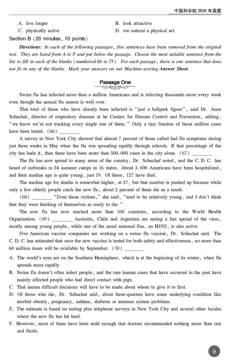 中国科学院2010年考博英语真题 打印版 套装专供(9)