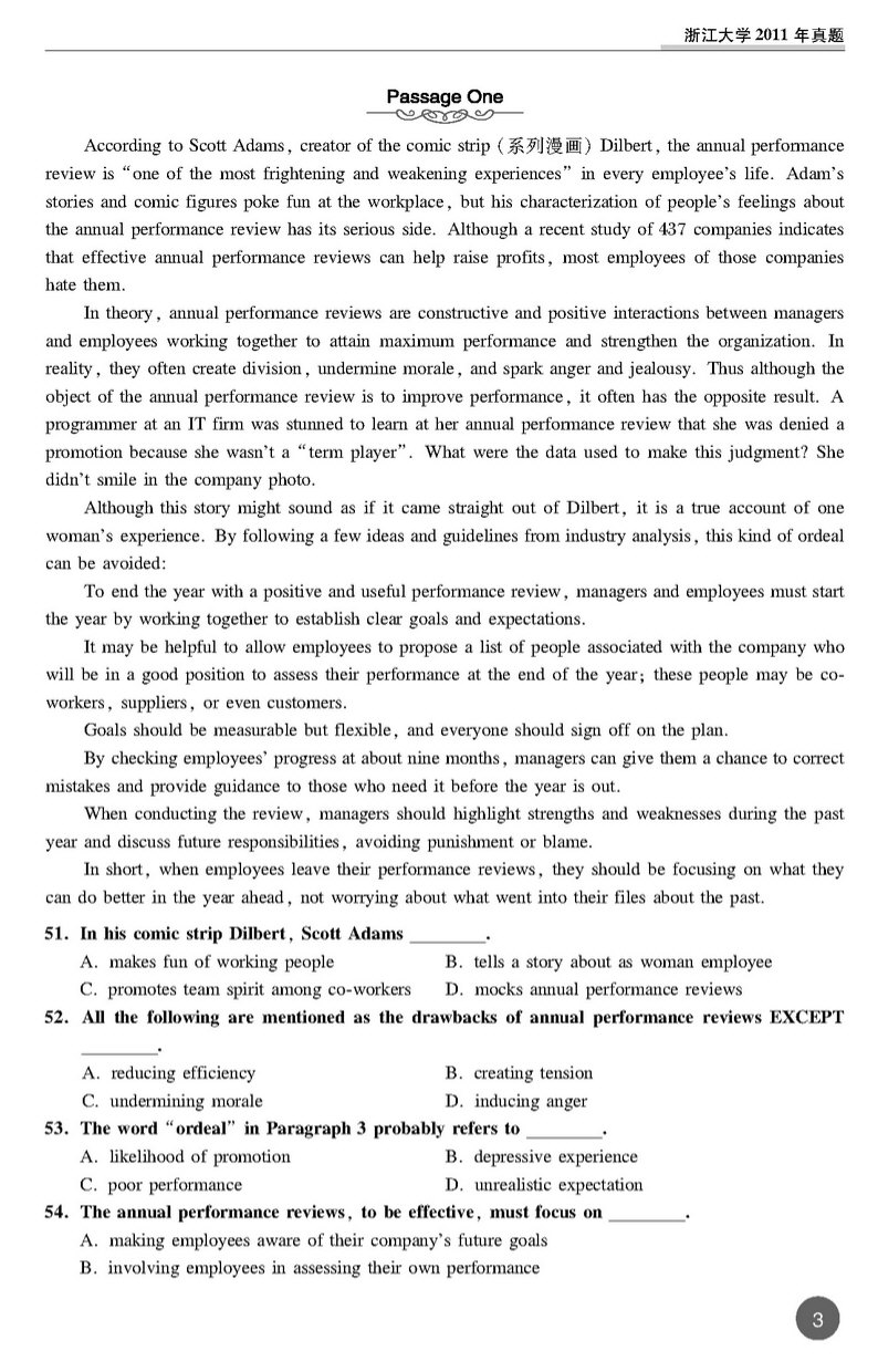 浙江大学2011年考博英语真题 打印版 套装专供(3)