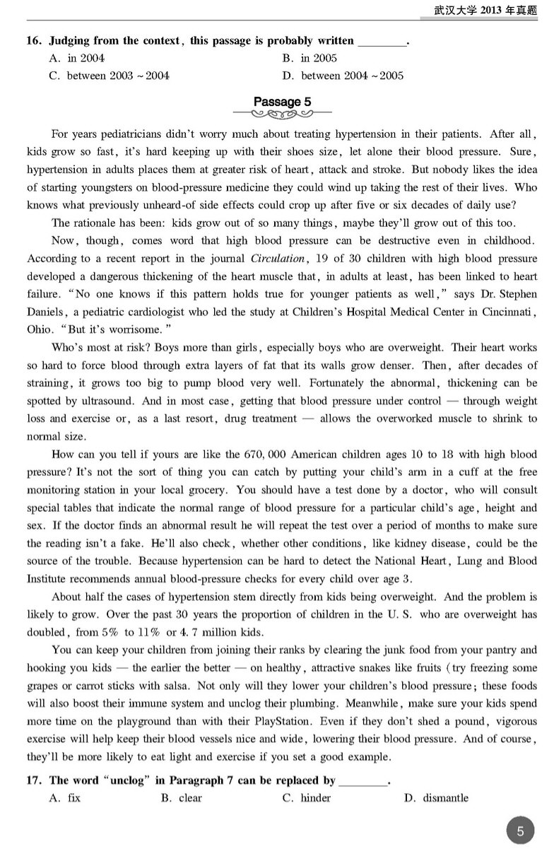 武汉大学2013年考博英语真题 打印版 套装专供(5)