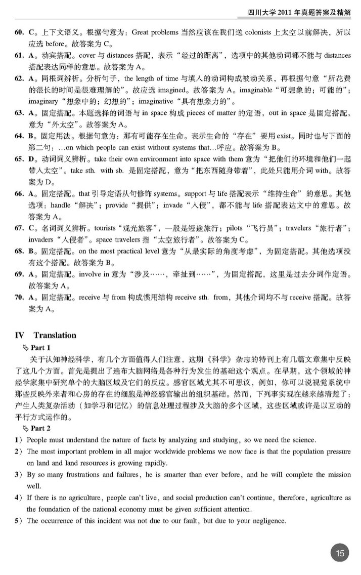 四川大学2011年考博英语真题 打印版 套装专供(15)