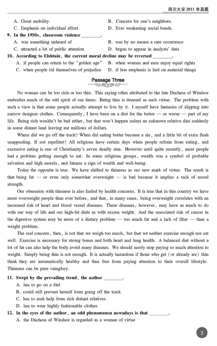 四川大学2011年考博英语真题 打印版 套装专供(3)