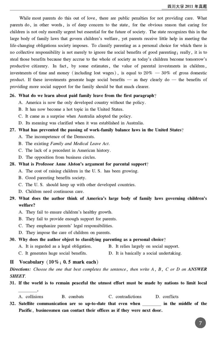 四川大学2011年考博英语真题 打印版 套装专供(7)