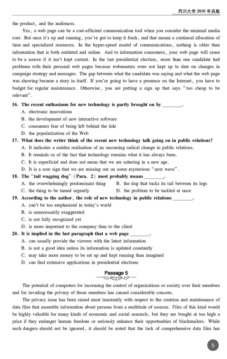 四川大学2010年考博英语真题 打印版 套装专供(5)