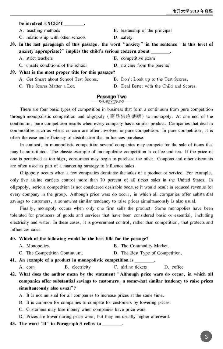 南开大学2010年考博英语真题 打印版 套装专供(3)