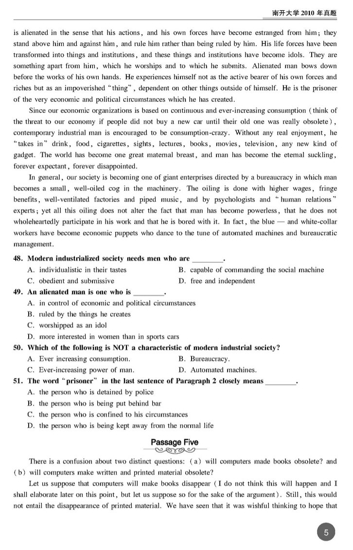 南开大学2010年考博英语真题 打印版 套装专供(5)