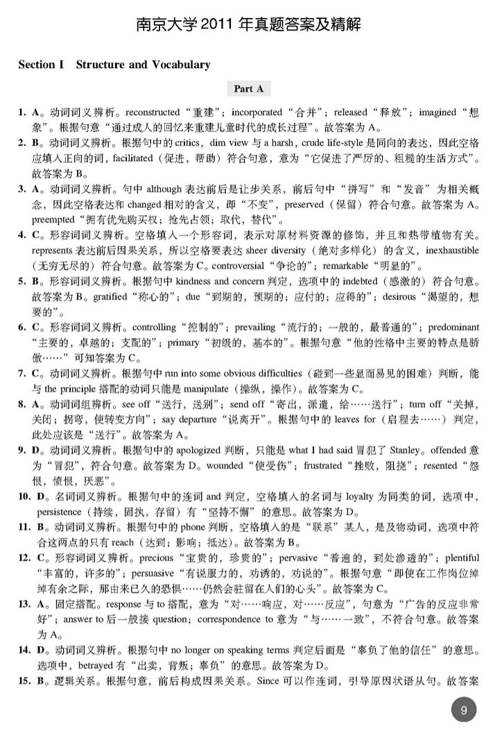 南京大学2011年考博英语真题 打印版 套装专供(9)