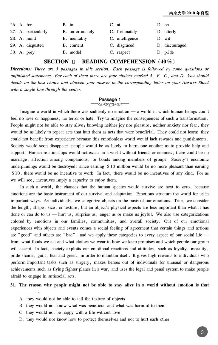 南京大学2010年考博英语真题 打印版 套装专供(3)