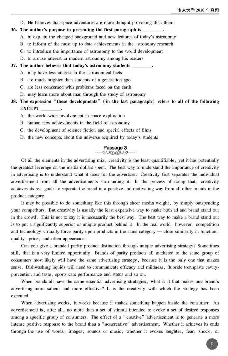 南京大学2010年考博英语真题 打印版 套装专供(5)