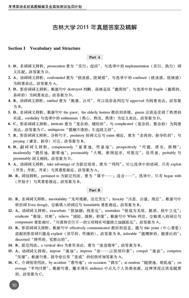 吉林大学2011年考博英语真题 打印版 套装专供(10)