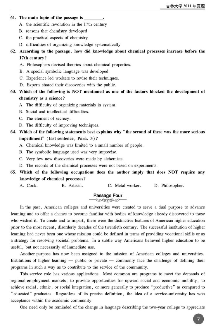 吉林大学2011年考博英语真题 打印版 套装专供(7)